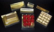 Clear acetate CHOCOLATE 2-piece boxes with gold cardboard inserts
